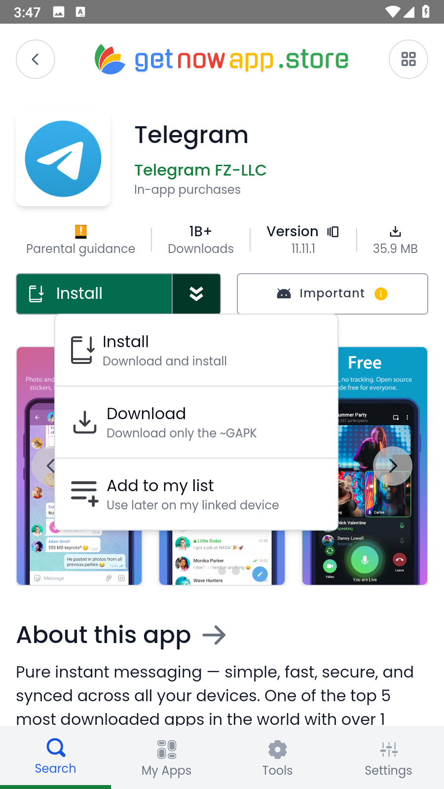 Download & install apps with the highest possible security, just as you would through Google Play.