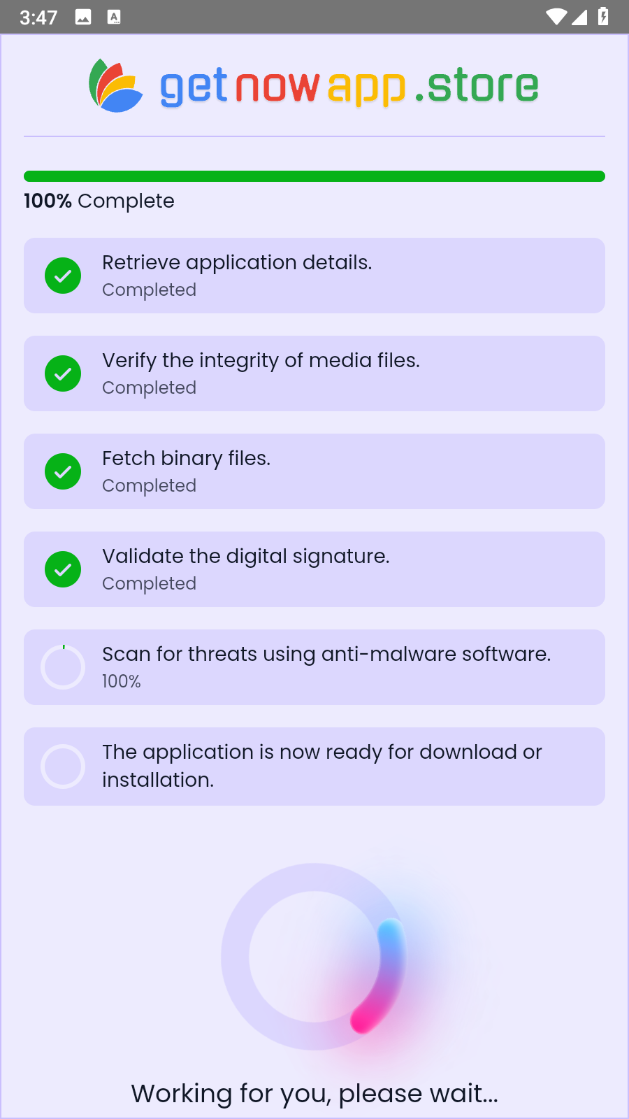 Every app undergoes multiple scans with trusted antivirus and anti-malware solutions to ensure its signature matches Google’s official verification for maximum safety.