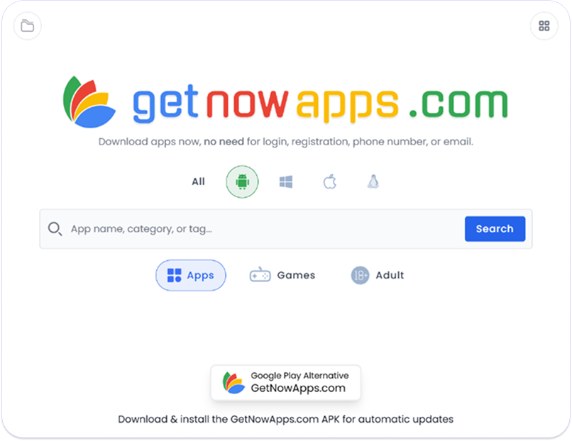 Get the alternative Google Play store. Find, install, and update apps automatically —NO registration required!